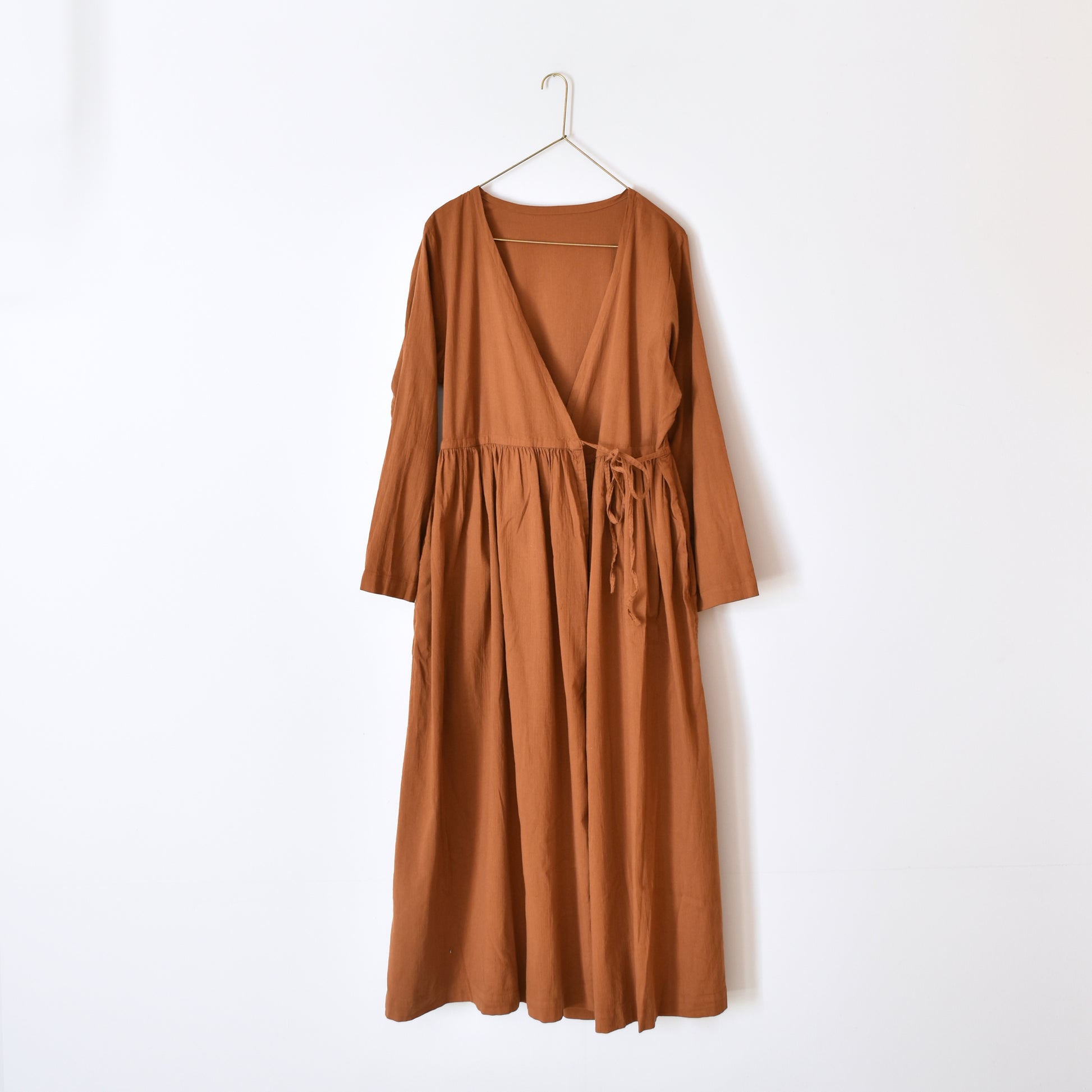 Shiboの柔らかい生地をたっぷり使ったカシュクールワンピースです。紐を結ぶ場所の違いでワンピースとして、羽織りとして色々な着方を楽しめます。