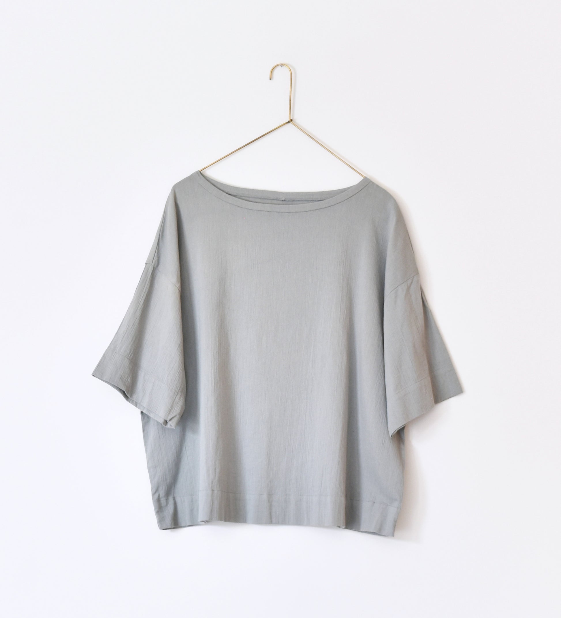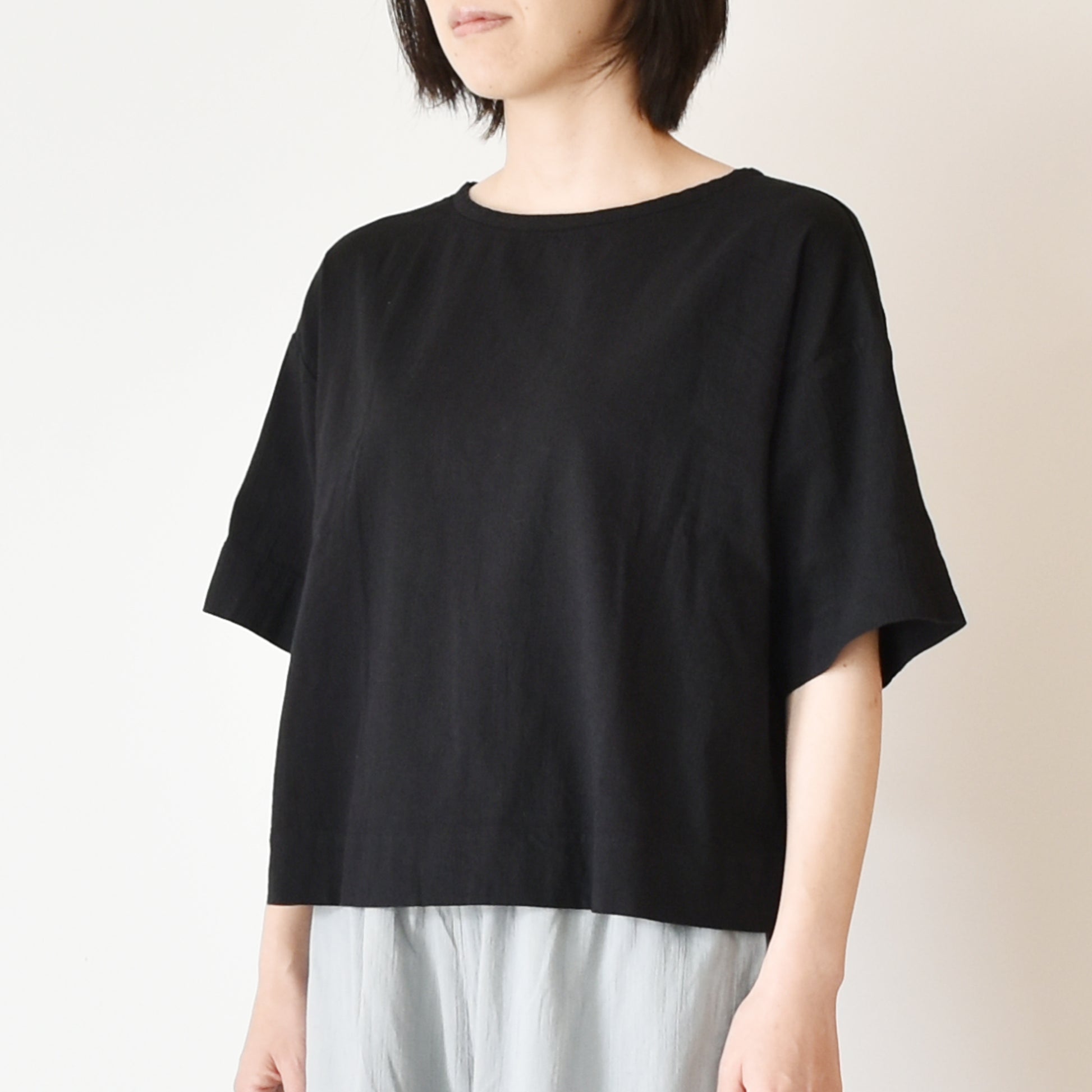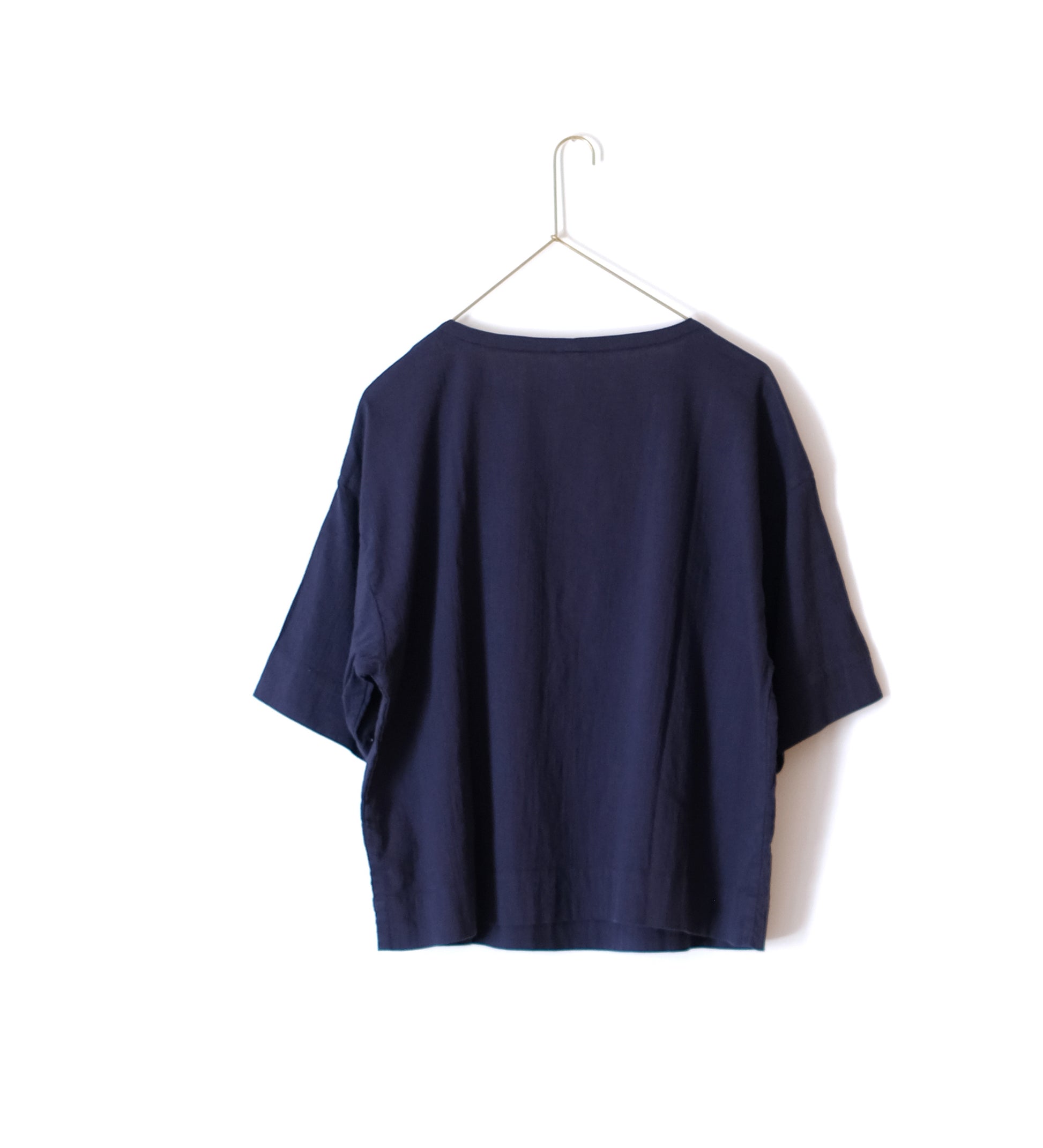 伸縮性のあるやわらかい生地はふんわりとした綺麗な形をつくり、気持ちがよく、涼やかな着心地です。袖を折り返して着ていただくのもおすすめです。