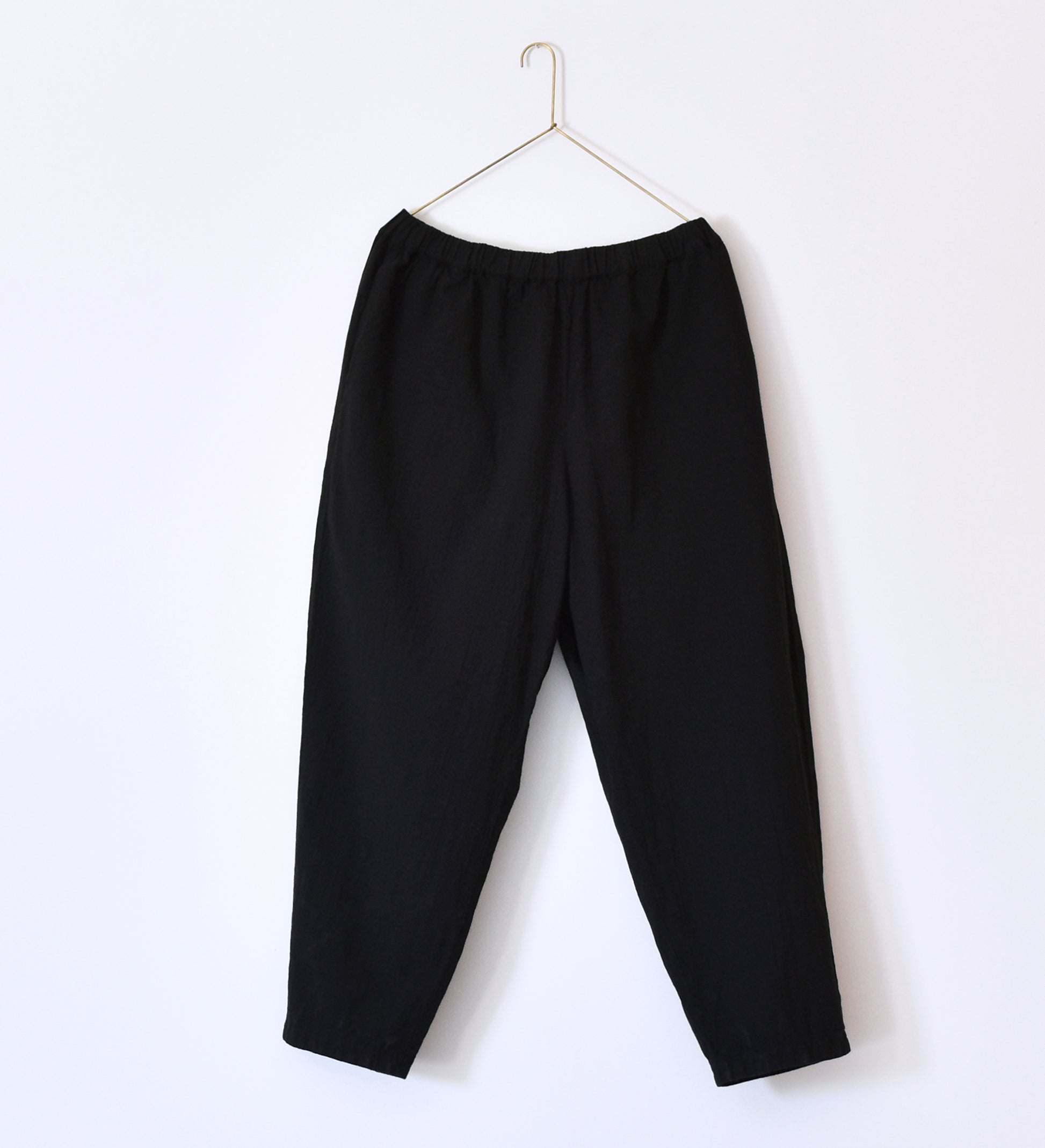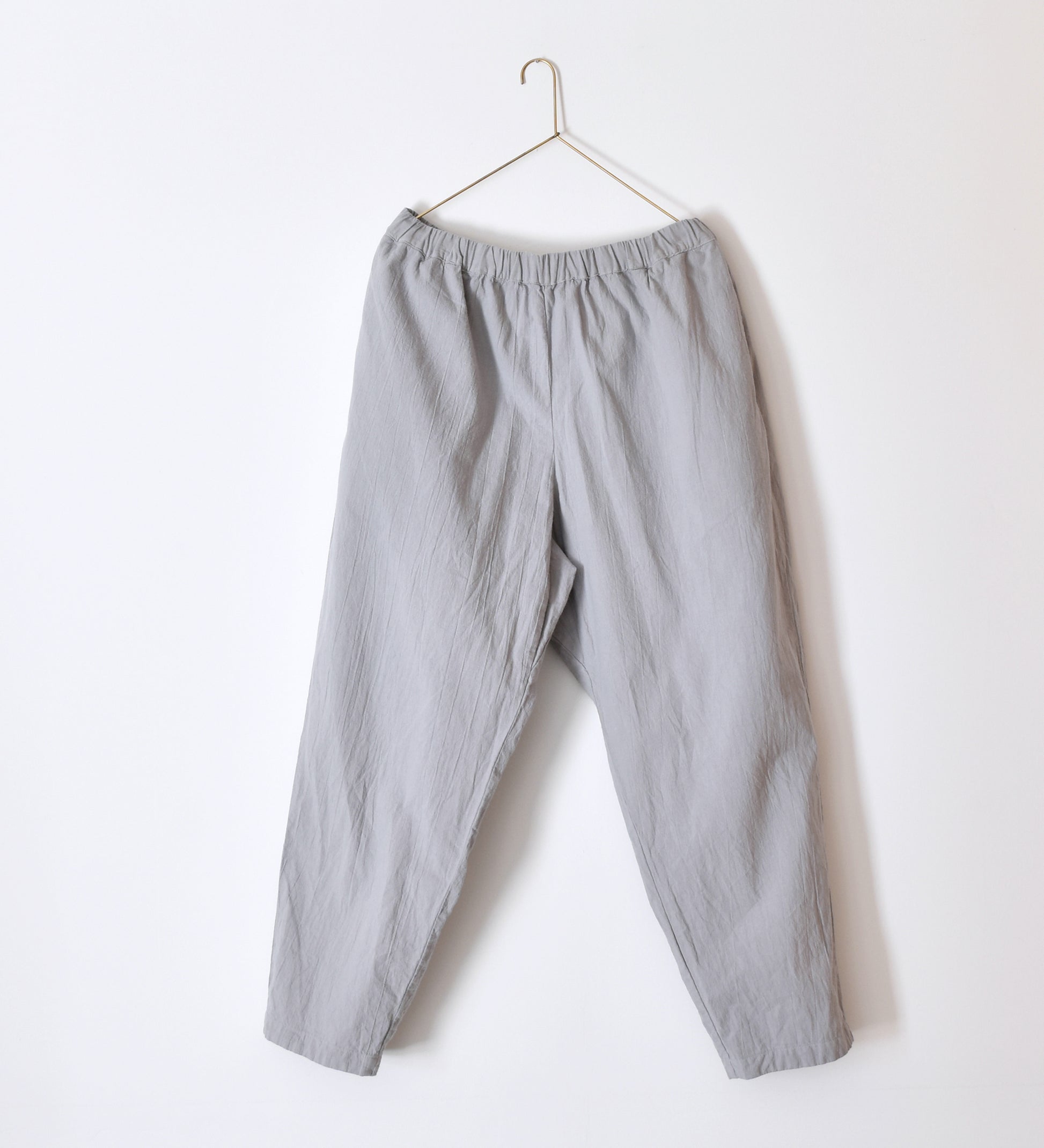 ウエストがゴムと紐で調整できるリラックスパンツです。